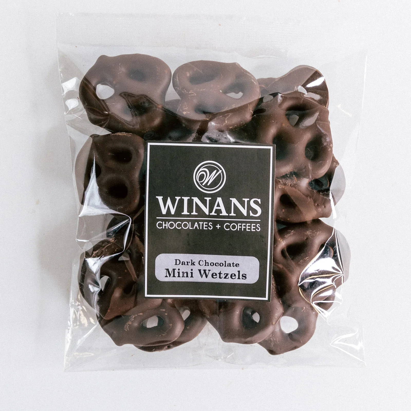 The bite-size version of our famous Wetzels, Winans Wetzel Minis are the perfect salty, crunchy, and sweet snack. Made with mini pretzels covered with Winans handcrafted milk, dark, or white chocolate, these scrumptious treats are indulgently delicious and just a bit addictive! 3oz bag